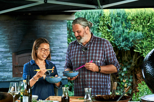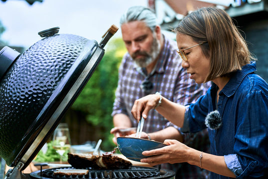 Asiatische Küche begleitet sie seit vielen Jahren. Korea fühlt sich für sie wie ein Stück Heimat an. „Diese Aromen, die Kombinationen – das ist tief in mir drin.“ Koreanisches Barbecue hat es ihr besonders angetan: klein geschnittenes Fleisch, Gemüse, dazu fermentierte Beilagen wie Kimchi, alles direkt am Tisch. Zu Hause gelingt das problemlos auf dem Rost des Monolith-Avantgarde-Grills.