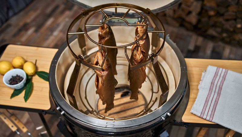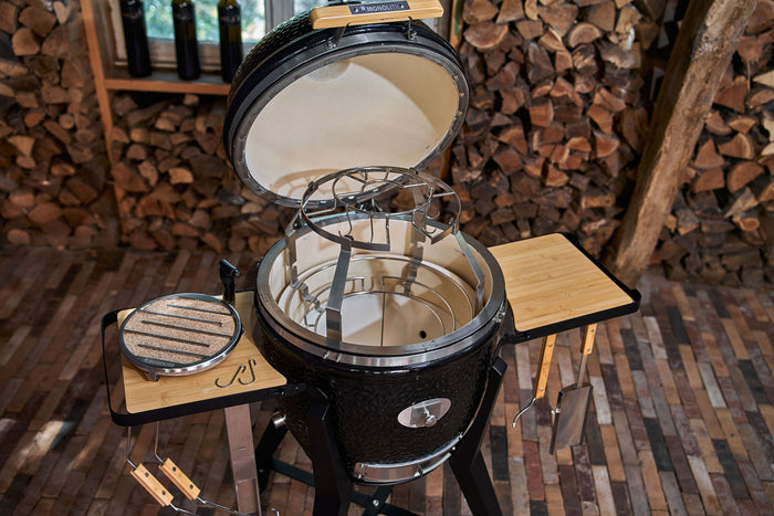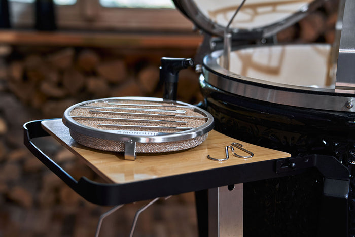 Las versátiles parrillas cerámicas de Monolith permiten preparar una amplia gama de platos, combinando el arte tradicional de asar a la parrilla con técnicas modernas. Con su último módulo accesorio, Monolith abre ahora aún más posibilidades en la preparación de aromáticas especialidades ahumadas - directamente en su propia parrilla, sin equipamiento adicional.