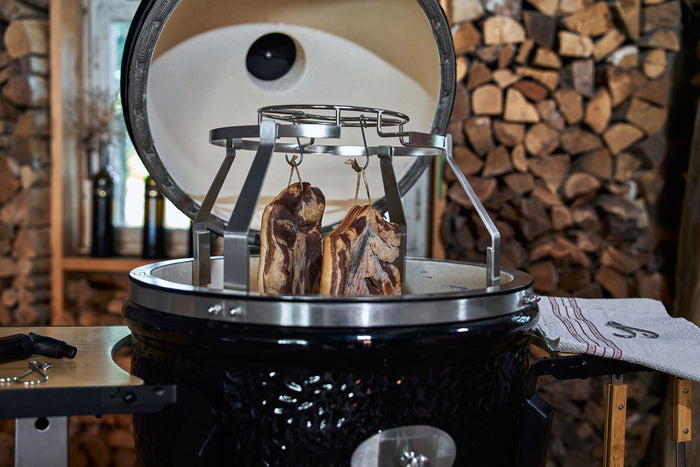 "Llevamos muchos años trabajando en el tema del ahumado. Se trata de un método muy antiguo de conservación y realce del sabor que actualmente está siendo redescubierto por el sector de la restauración y los aficionados a las barbacoas. Por ello, hemos desarrollado un set de ahumado para nuestras barbacoas de cerámica que permite tanto el ahumado en caliente como el ahumado en frío", afirma Matthias Otto, experto en barbacoas y fundador de Monolith.