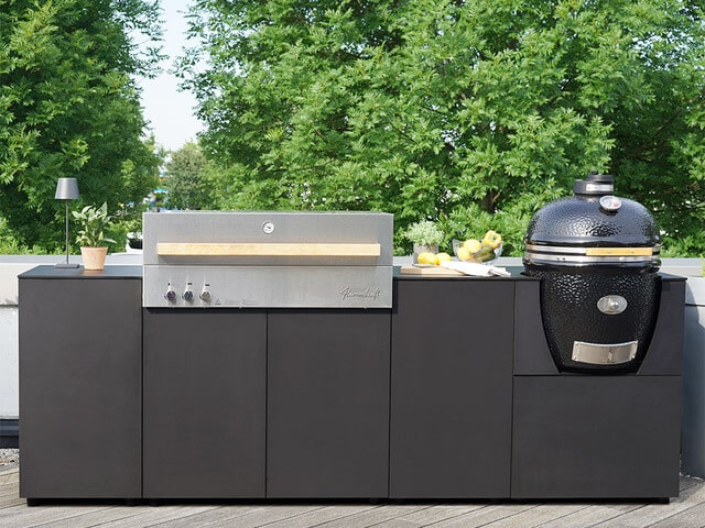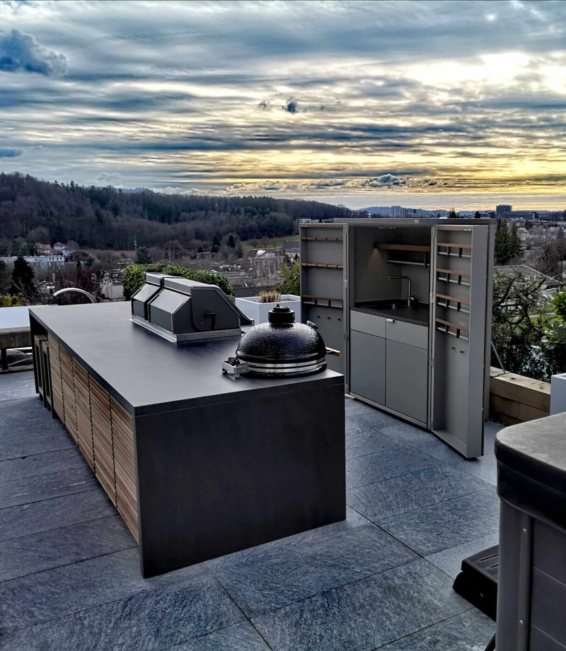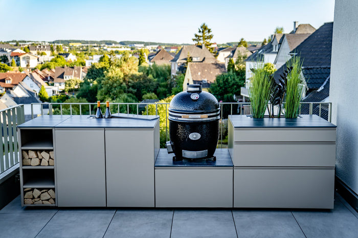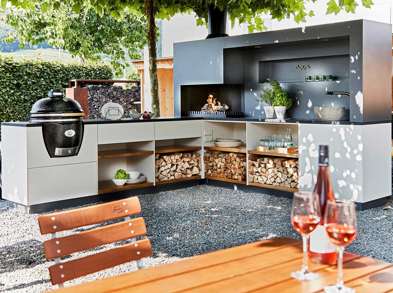 Sur la terrasse, le balcon ou le lieu de retraite qu'est la cuisine d'extérieur : le barbecue MONOLITH n'attire pas seulement le regard, il déploie encore plus de potentiel dans le bon environnement - ajoute à ton Monolith différents modules de cuisson, une cheminée et des sièges et transforme ton jardin en un espace de vie premium exclusif avec une cuisine d'extérieur. Pour plus d'informations ou pour être mis en relation avec l'un de nos nombreux partenaires, n'hésite pas à nous contacter.