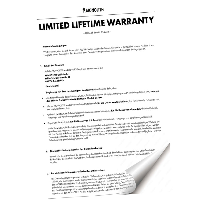Tu trouveras ici toutes les informations sur notre MONOLITH Limited Lifetime Warranty. Télécharge les conditions de garantie au format PDF.