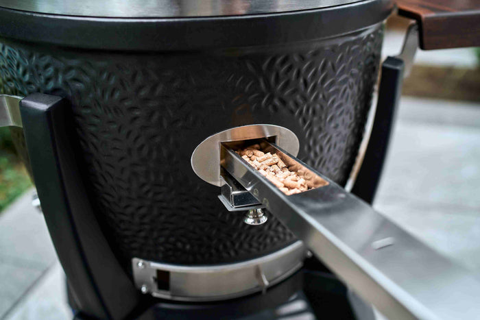 - Le set Chip Feeder permet d'ajouter facilement des chips de fumage de l'extérieur - pour un véritable arôme de BBQ sans ouvrir le couvercle.