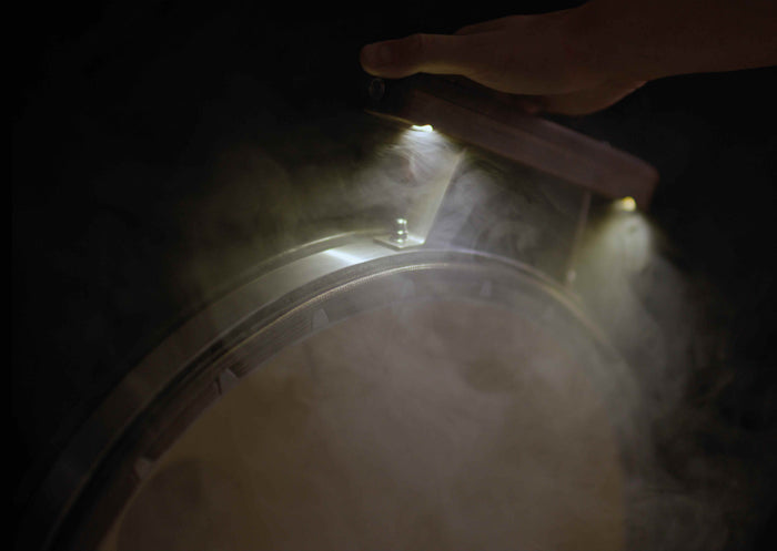 Deux lampes LED supplémentaires ont été installées dans la poignée. Elles peuvent être actionnées par un interrupteur métallique sur le côté de la poignée. Ainsi, il est désormais possible de faire des grillades confortablement dans l'obscurité, sans avoir besoin d'une lampe supplémentaire. Génialement simple - simplement génial !