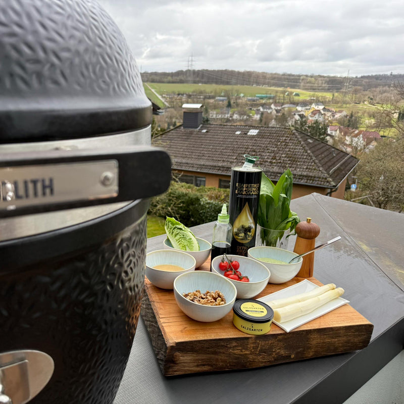 Ziel ist eine leichte Bräunung mit Röstaromen, der Spargel soll aber noch Biss haben (ca. 6–8 Minuten je nach Dicke). Nach dem Grillen kurz ruhen lassen.