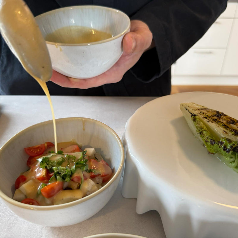 Vinaigrette bewusst fruchtig-säuerlich halten als Kontrast zur cremigen Sauce