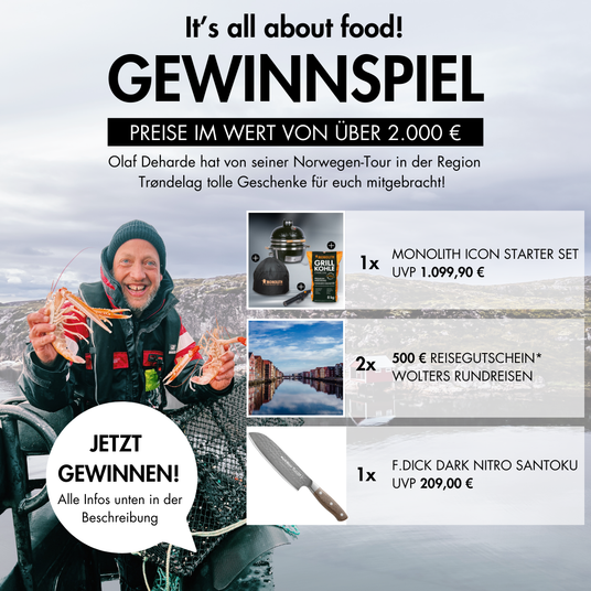 Venite con noi in un delizioso viaggio su strada in una classe a sé stante! Il nostro partner di marca Olaf Deharde si è fatto strada a suon di barbecue attraverso le specialità culinarie della regione ancora inesplorata del Trøndelag, nella Norvegia centrale. Con il nostro ICON nel bagagliaio, Olaf guida da Oppdal a Inderøy e da Hitra alla città portuale di Trondheim. L'ICON fuma, brilla e cuoce in montagna, sul mare e in città. Con i più deliziosi frutti di mare, funghi e specialità di carne locali.
